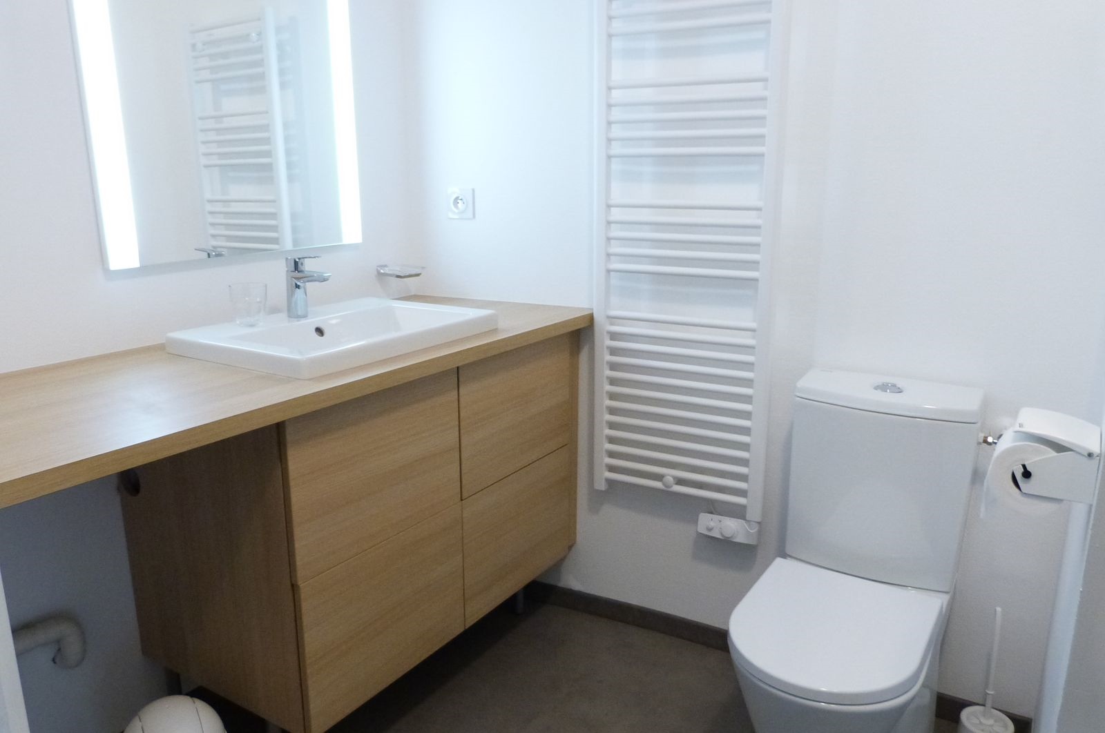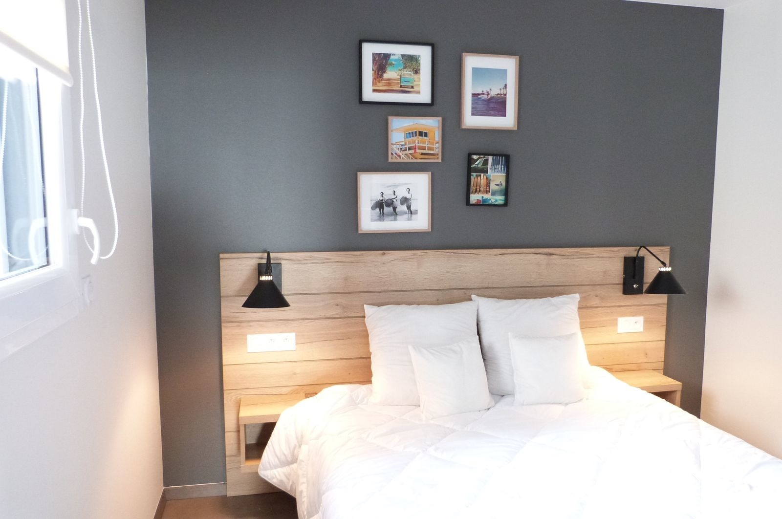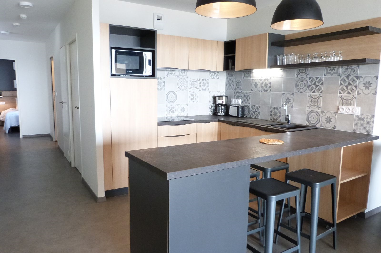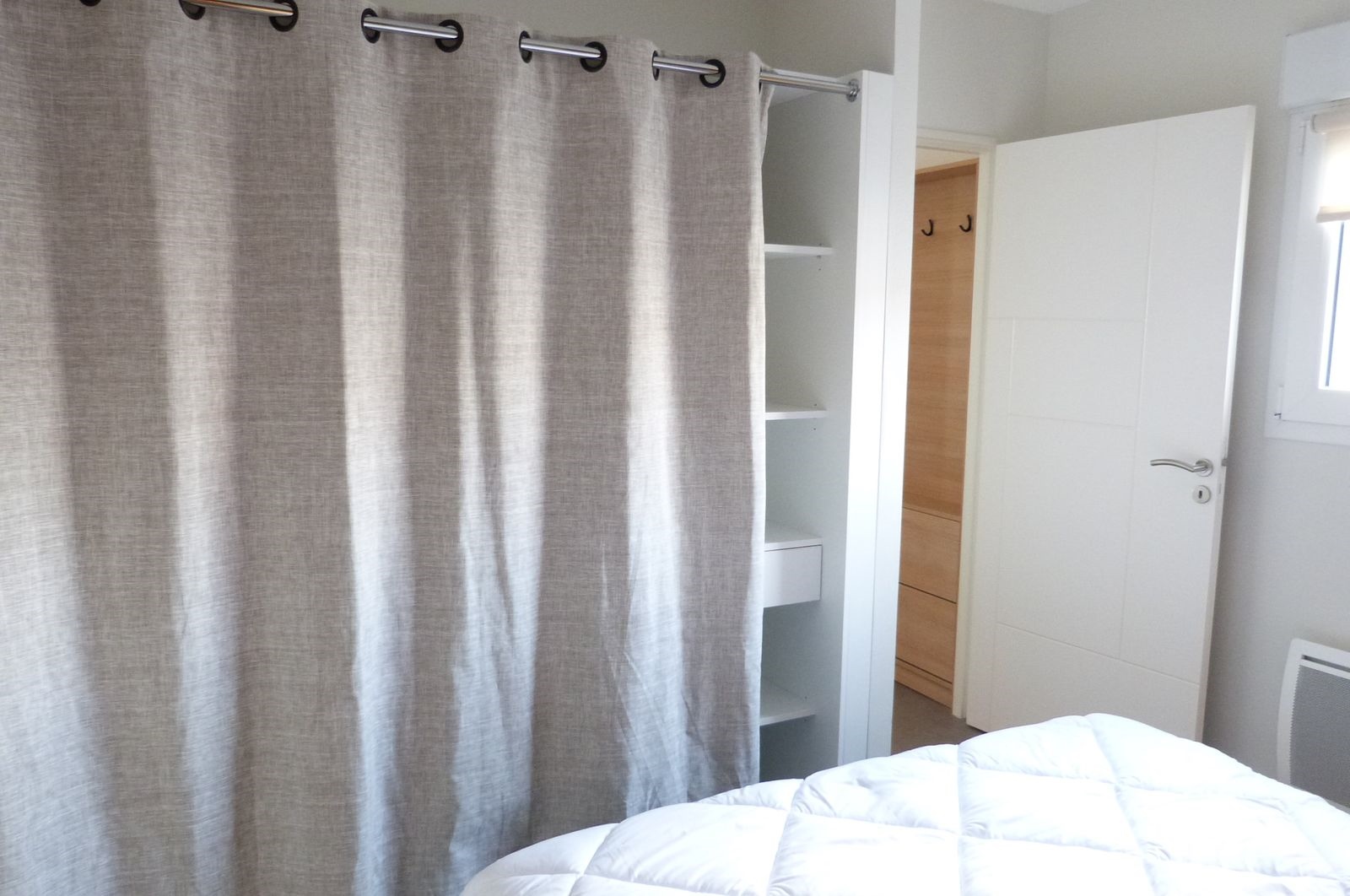 Il se compose d'une entrée, d'une chambre avec 1 lit double en 160 et dressing, d'une salle d'eau avec douche à l'italienne et wc. D'une pièce de vie de 27m2 avec une cuisine équipée ouverte sur le salon avec canapé convertible en couchage 2 places et TV écran plat.
