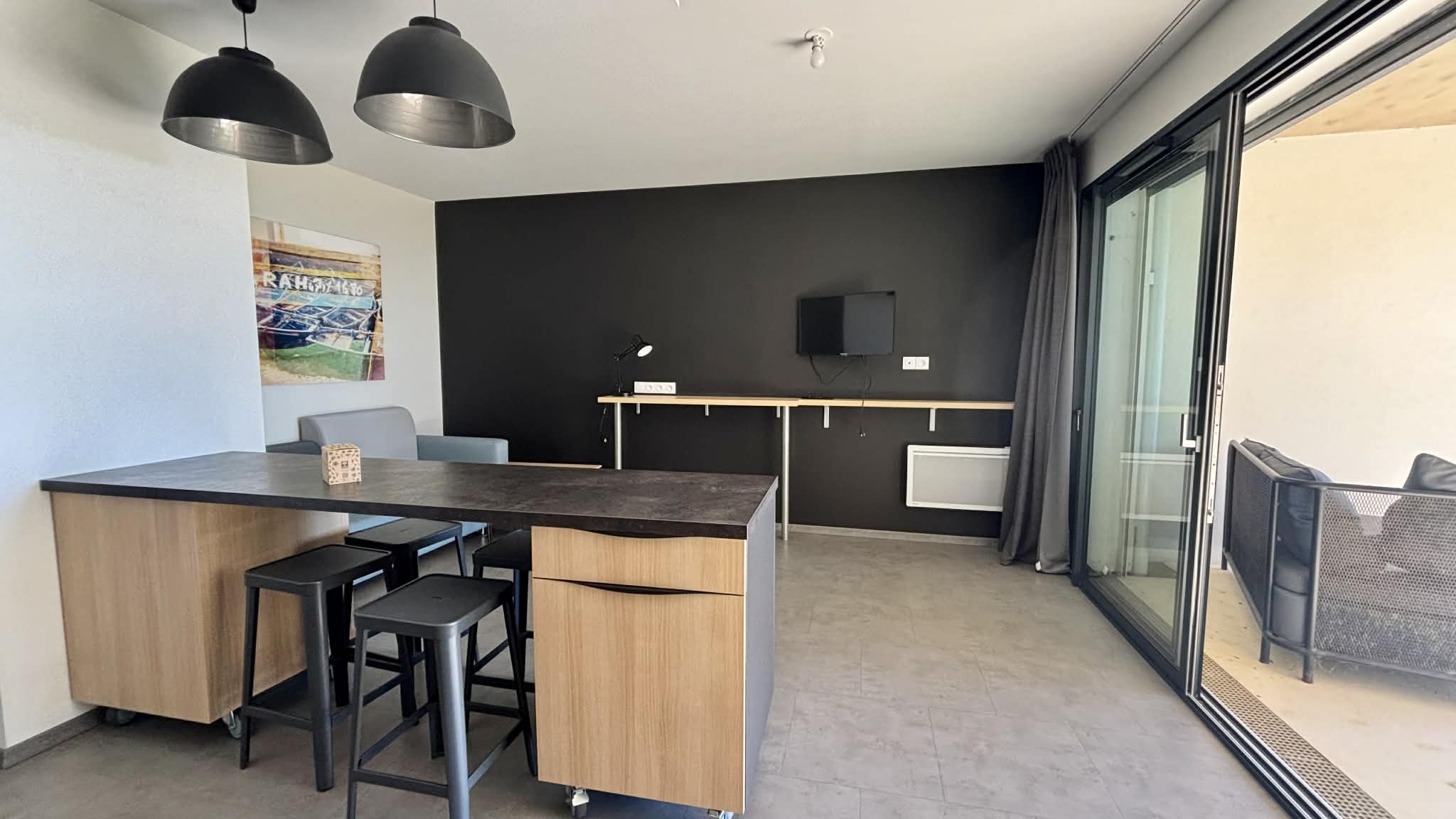 Salon/séjour avec îlot central, canapé convertible en 140, télévision écran plat,
