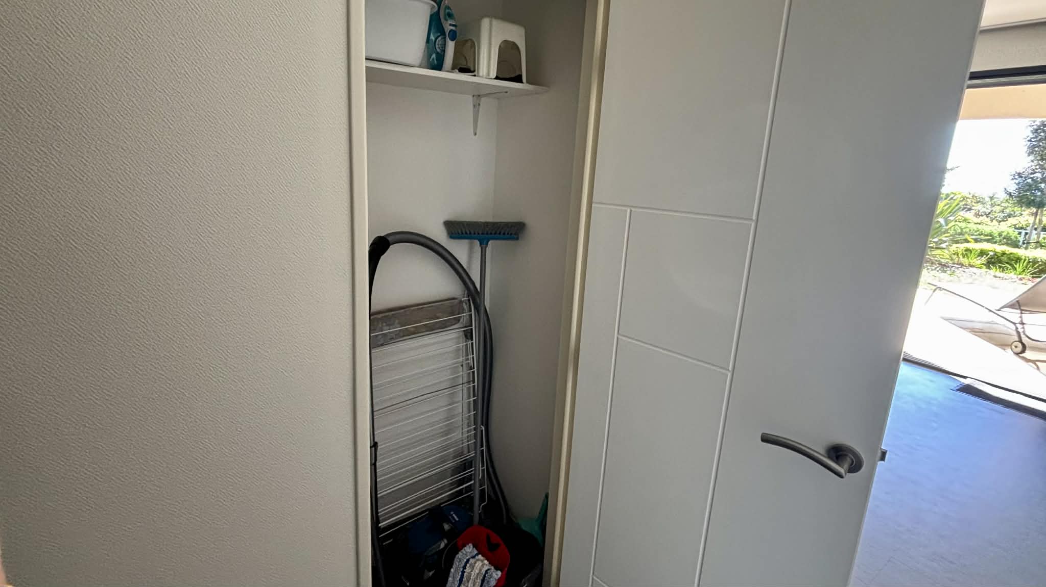 Placard de rangement avec nécessaire pour le nettoyage (aspirateur, serpillère, balais),